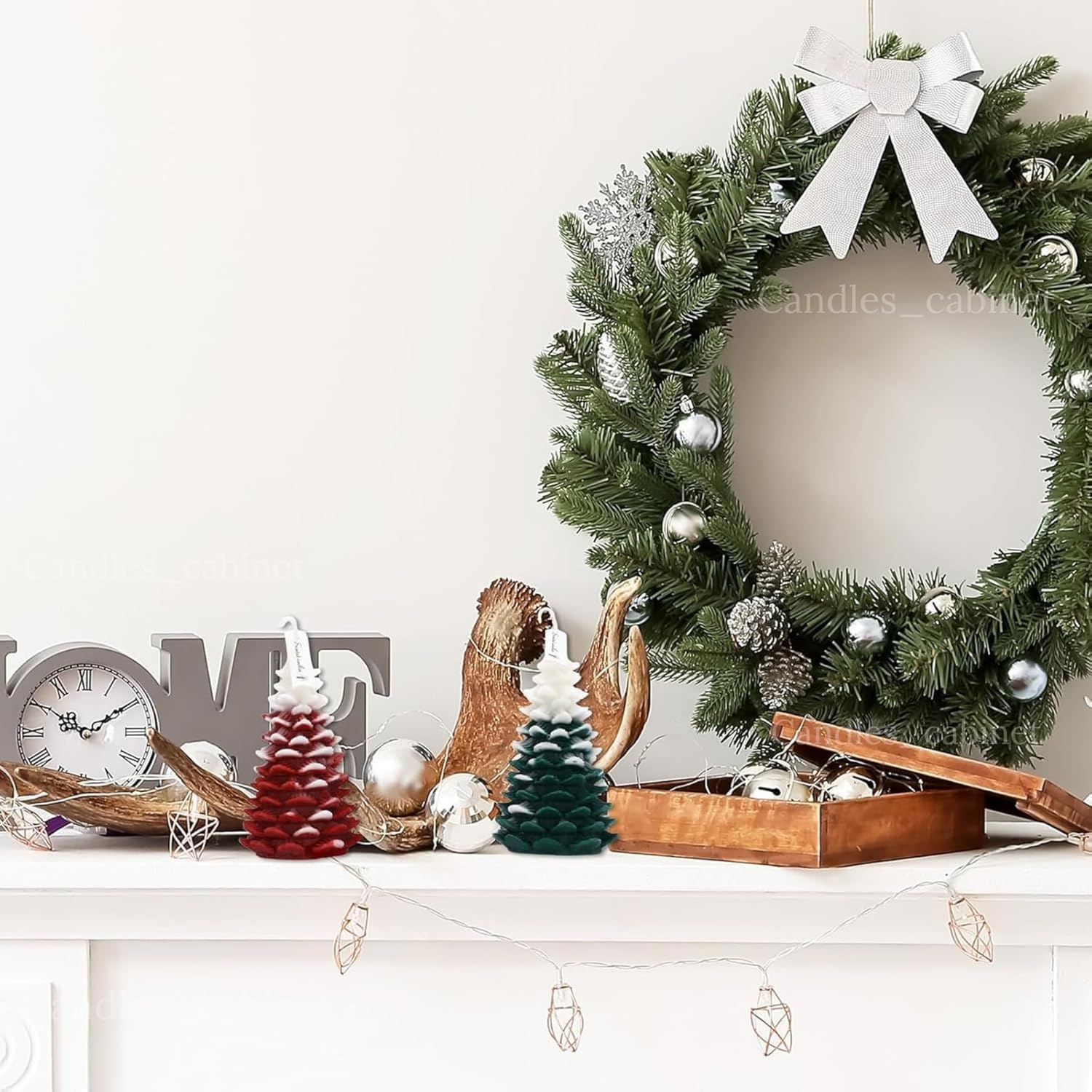 Quantity of product CANDLE_CABINETS 2 Pcs Christmas Tree Shaped Candles Large White Green Xmas Wax Scented Candles 2.5 x 5.5 inch Snow Tree Shaped Candle for Christmas Holiday Table Decoration can not be less than 2