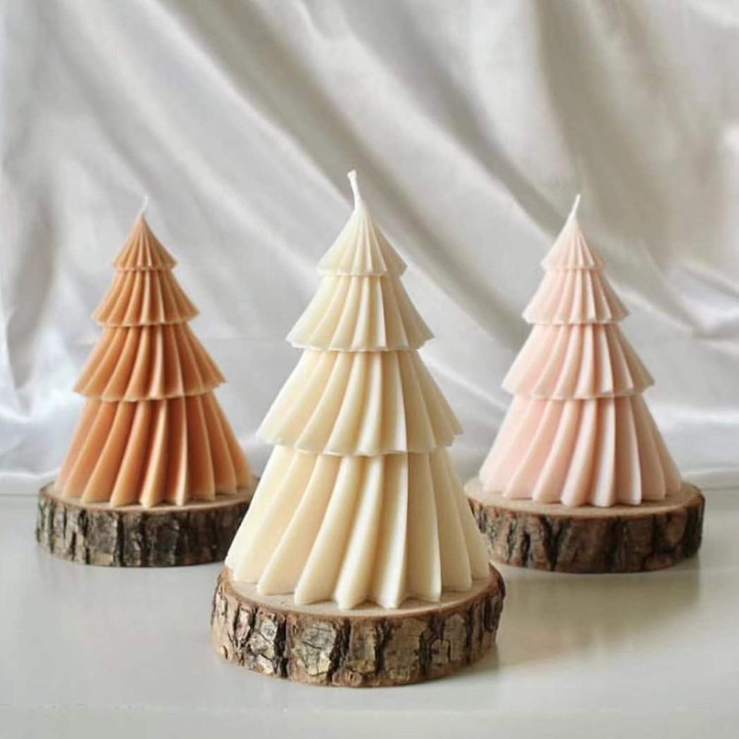 Candles_cabinet Large Christmas Tree Silicone Candle Mold, DIY 3D Spiral Cone Shape Mold,Folding Cone Christmas Tree for Candle Making, 3D Geometric Spinning Pillar Molds for Christmas Ornament(4.8″)