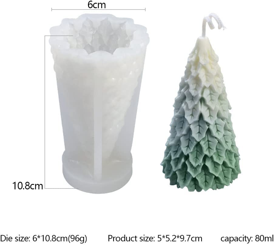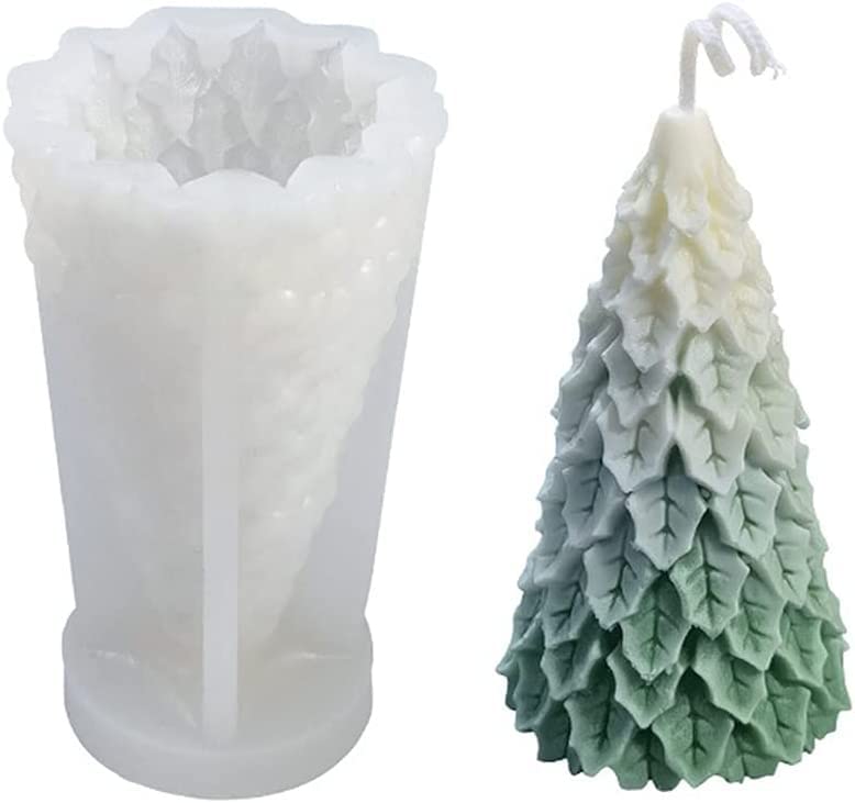 Leafy Pine Christmas Tree Candle Mold, 3D Fondant Silicone Scented Wax Mould